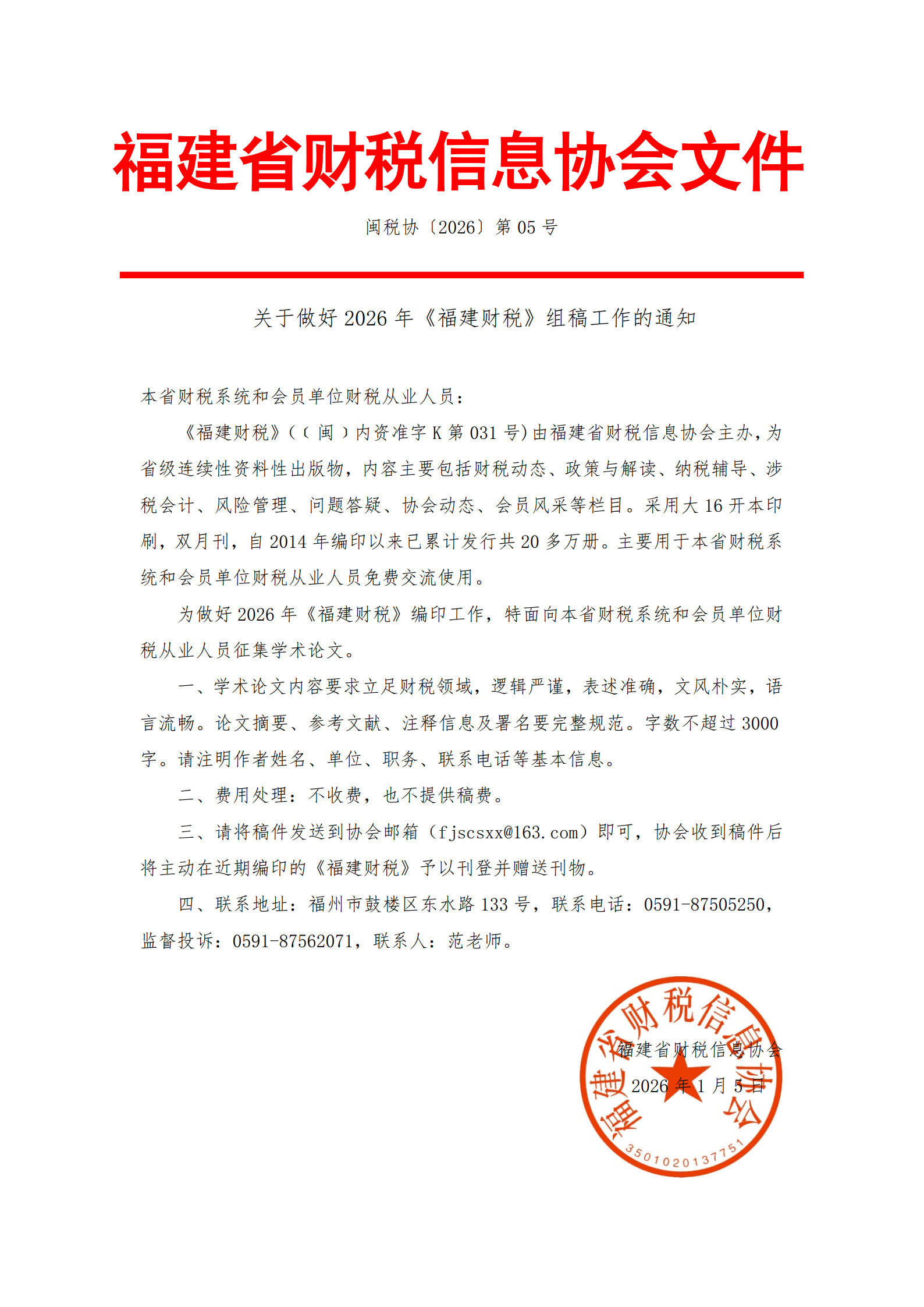 關(guān)于做好2026年《福建財稅》組稿工作的通知