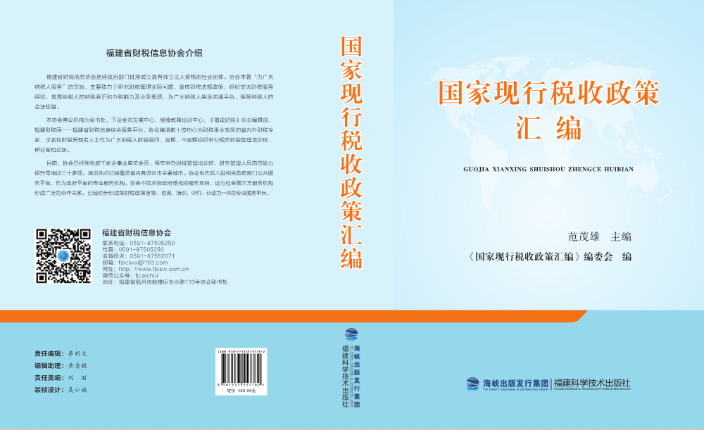 由福建省財(cái)稅信息協(xié)會(huì)組織成立編委會(huì)并負(fù)責(zé)編撰的《國(guó)家現(xiàn)行稅收政策匯編》2019年版現(xiàn)已面向社會(huì)出版發(fā)行。