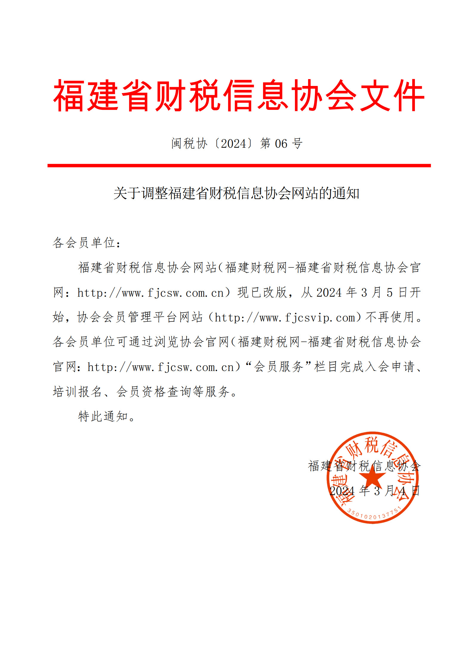 關(guān)于調(diào)整福建省財(cái)稅信息協(xié)會(huì)網(wǎng)站的通知