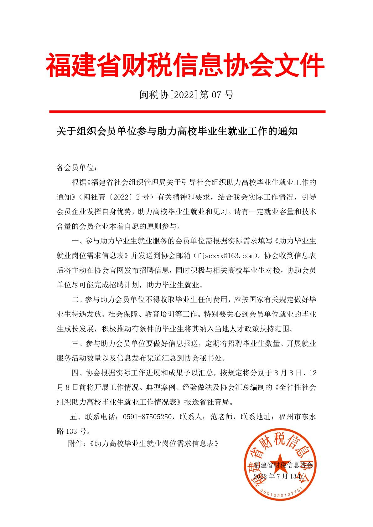 關(guān)于組織會員單位參與助力高校畢業(yè)生就業(yè)工作的通知