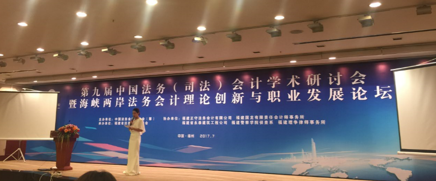 2017年7月29日,由中國法務(wù)會計研究會(籌)主辦、福建省法務(wù)會計促進會承辦的第九屆中國法務(wù)(司法)會計學術(shù)研討會暨海峽兩岸法務(wù)會計理論創(chuàng)新與職業(yè)發(fā)展論壇,在福州市西湖賓館召開。