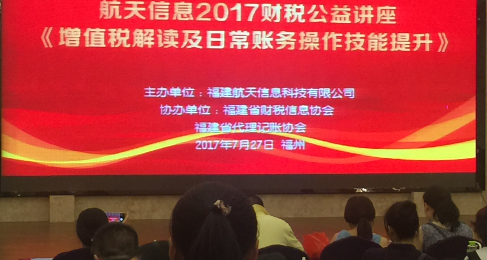 2017年7月27日,為更好的幫助和促進我省代理記賬行業(yè)健康發(fā)展,提升代理記賬行業(yè)企業(yè)財稅人員日常賬務(wù)操作技能,福建省財稅信息協(xié)會積極組織有關(guān)代理記賬行業(yè)會員參加由福建航天信息主辦,福建省財稅信息協(xié)會、福建省代理記賬行業(yè)協(xié)會協(xié)辦的“2017年財稅公益講座暨增值稅解讀及日常賬務(wù)操作技能提升”培訓(xùn)。